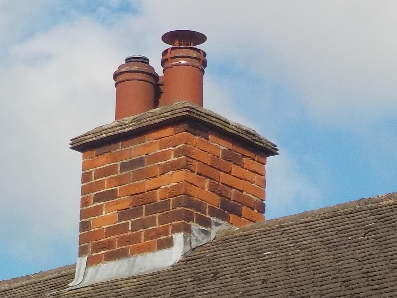 The chimney pointing is erroded. Repairs will be expensive if as with correct practice a scaffold is used.