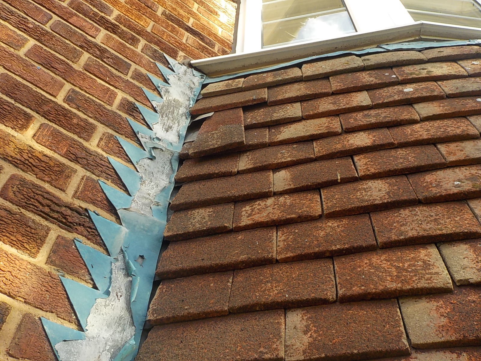 This tile is about to drop possibly on somebody's head.