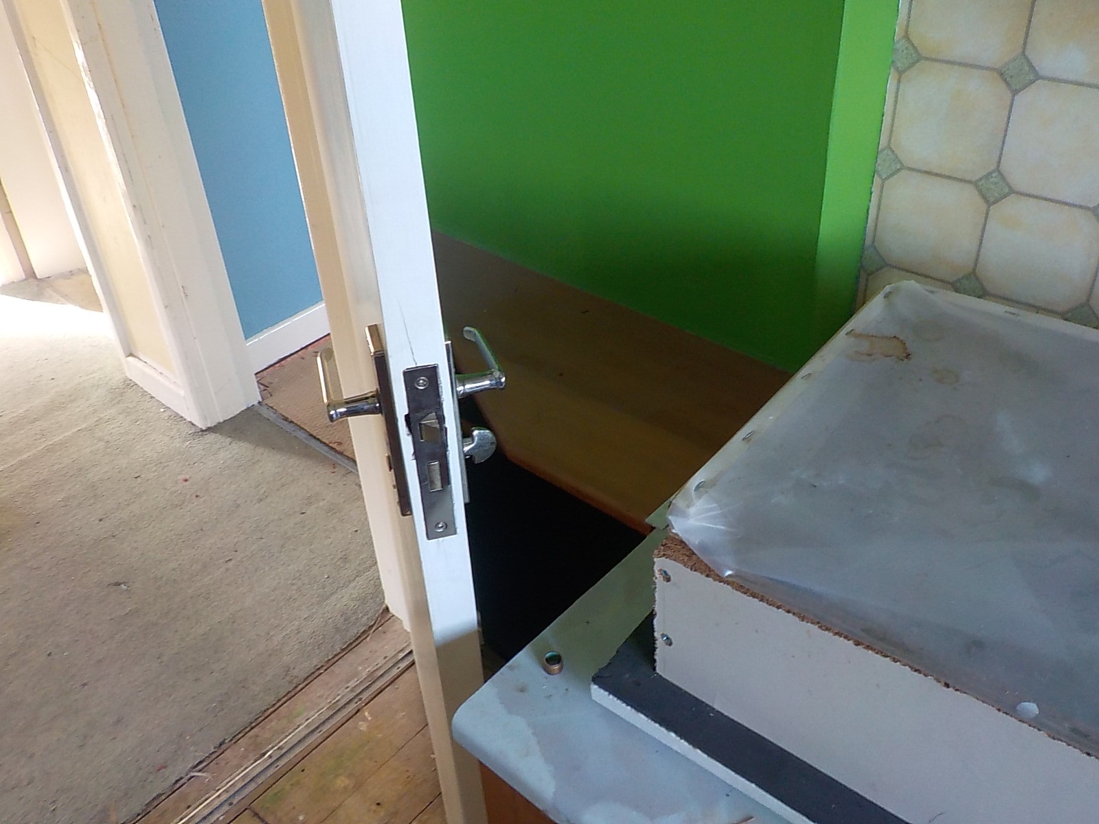 Door is obstructed due to poor planning. You have to squeeze into the bathroom.