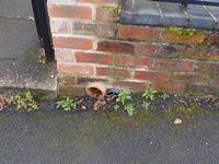The elevations on this typical 1930's house have been rendered to save money by avoiding the need to purchase and carefully lay expensive facing bricks. The render had been given sharp edges at the openings using metal beads. Unfortunately these were corroding leaving unsightly stains. The only remedy is to chop them out and re render which requires skill to blend the new into the old. The house then has to be repainted unless matching paint is available. The roof surface had formed a dish shape due to a slightly substandard structure in which a major component was undersized and had sagged slightly. An outbuilding had a fractured concrete roof. Apart from letting water into the outbuildings this is potentially problematic as the reinforcing may start to corrode forcing concrete of the roof until it is eventually destroyed. The property had the original quarry tile floor in the kitchen. This was uneven due to the sand or ash on which it had been laid compacting unevenly. The tiles and particularly the joints are likely to be damp as there is no damp proof membrane under. Such floors need to be kept uncovered and well ventilated. Roots had also invaded a drain and were catching water material. Fortunately this was at an early stage and the chamber had not filled.