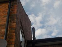 Measurement with a spirt level suggest that the top fifteen course of bricks at this Knowle property are out of plumb by 150mm from above the point at which two purlins bear into the gable wall. The top ten course of the wall are built with a single skin of bicks and are likely to be unstable. The the likely cause of the leaning wall is failure to ties it into the strcture at the time of construction.